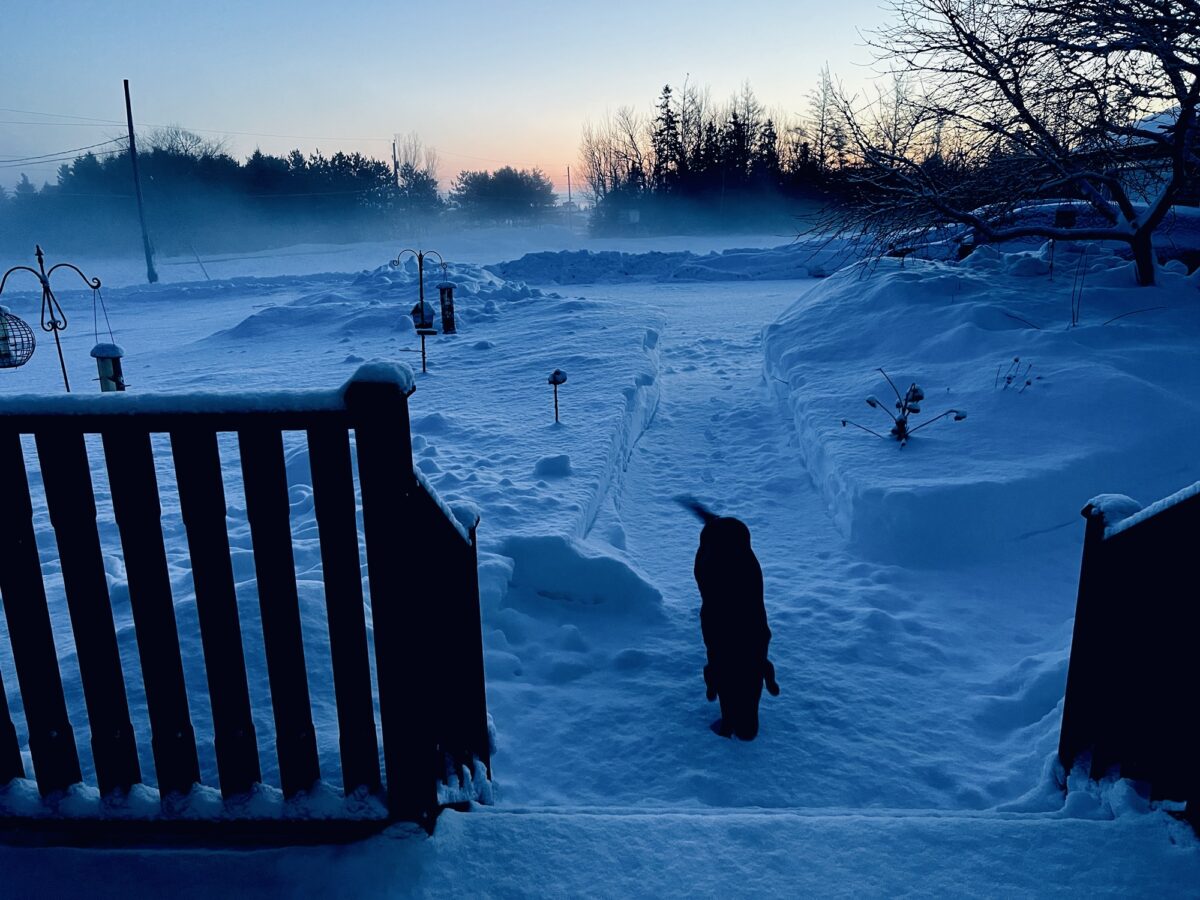 Our first morning. A skiff of snow and ice fog rolling in. Beautiful morning.